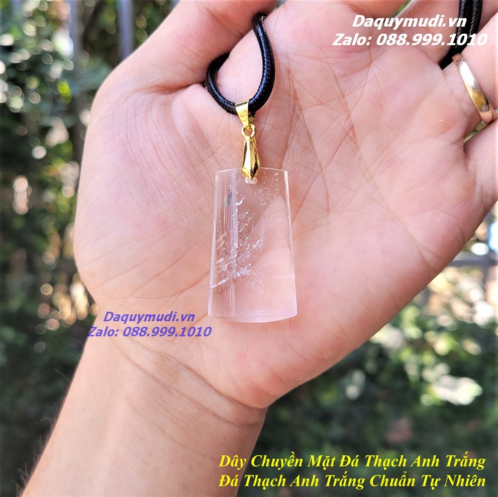 Bộ sản phẩm gồm: 1 mặt dây chuyền đá THẠCH ANH TRẮNG tự nhiên, dây đeo, túi nhung đỏ, hộp đựng sang trọng.