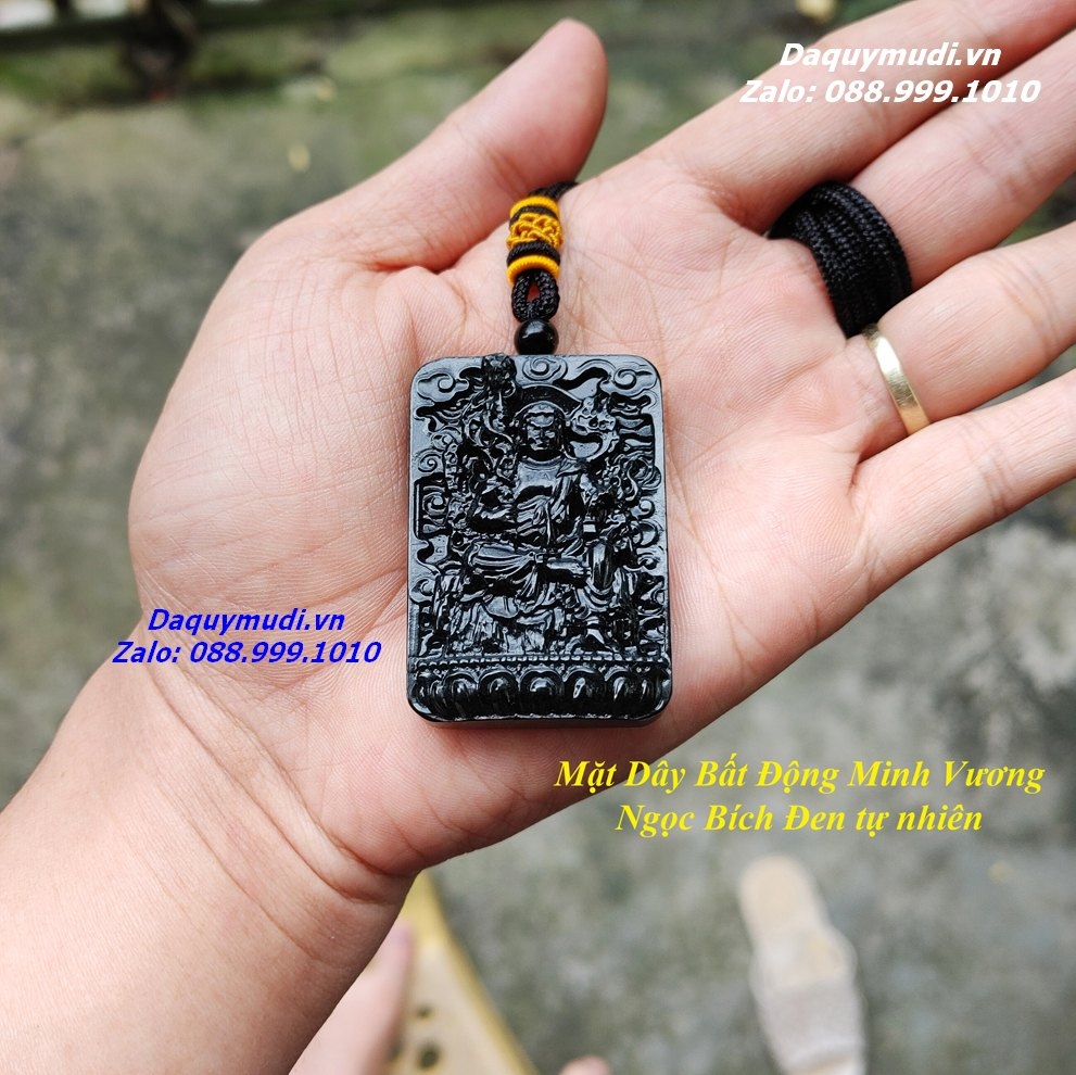 Bộ sản phẩm gồm: 1 mặt dây chuyền chạm khắc hình BẤT ĐỘNG MINH VƯƠNG từ chất liệu NGỌC BÍCH ĐEN tự nhiên như hình ảnh, dây đeo, túi nhung đỏ, hộp đựng sang trọng.