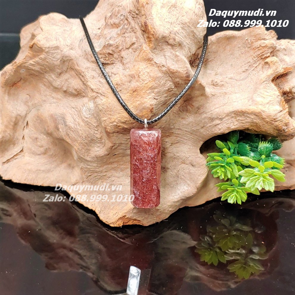 Bộ sản phẩm gồm: 1 mặt dây chuyền đá thạch anh dâu tây hồng tự nhiên, dây đeo, túi nhung đỏ, hộp đựng sang trọng.