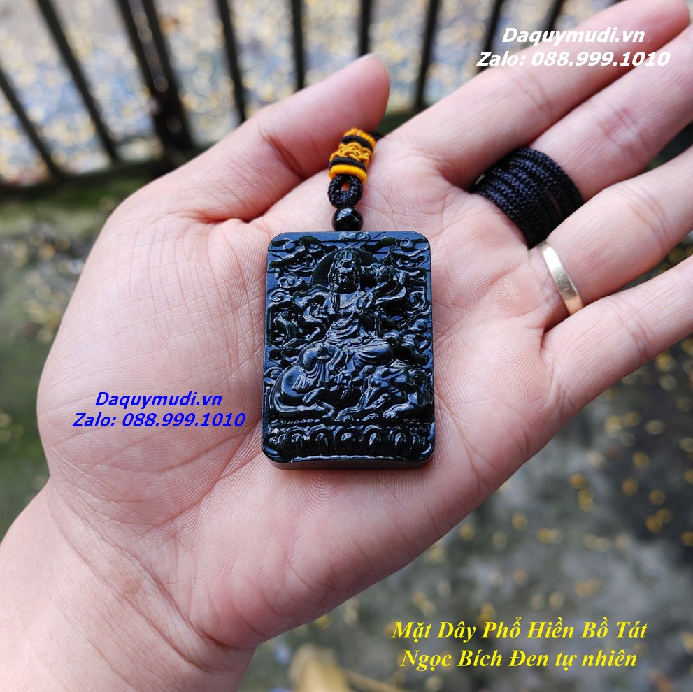 Bộ sản phẩm gồm: 1 mặt dây chuyền chạm khắc Bồ Tát Phổ Hiền từ chất liệu NGỌC BÍCH ĐEN tự nhiên như hình ảnh, dây đeo, túi nhung đỏ, hộp đựng sang trọng.