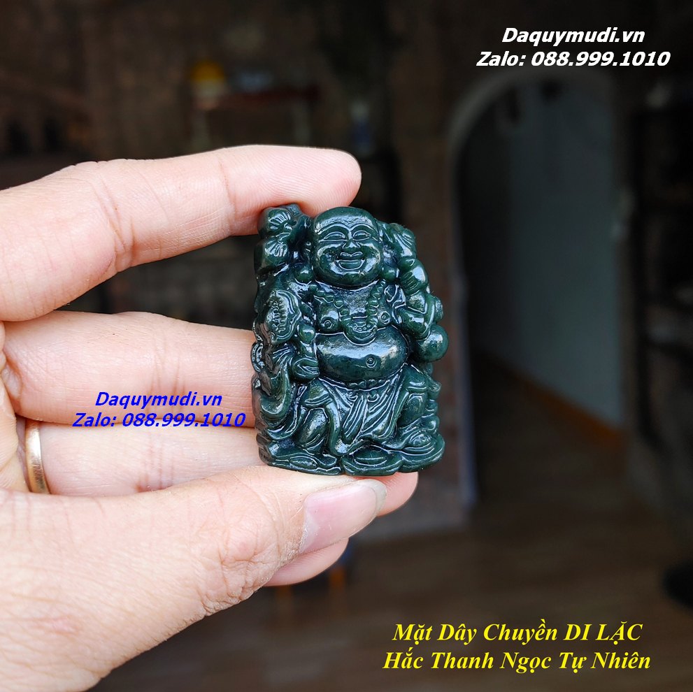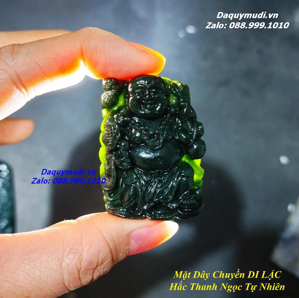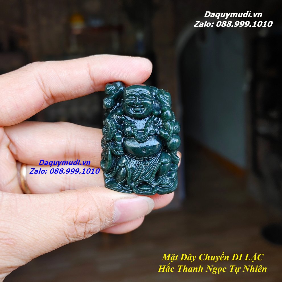 Bộ sản phẩm gồm: 1 mặt dây chuyền chạm hình PHẬT DI LẶC từ chất liệu NGỌC BÍCH XANH SAPHIA - XANH ĐEN - HẮC THANH NGỌC tự nhiên như hình ảnh, dây đeo, túi nhung đỏ, hộp đựng sang trọng.