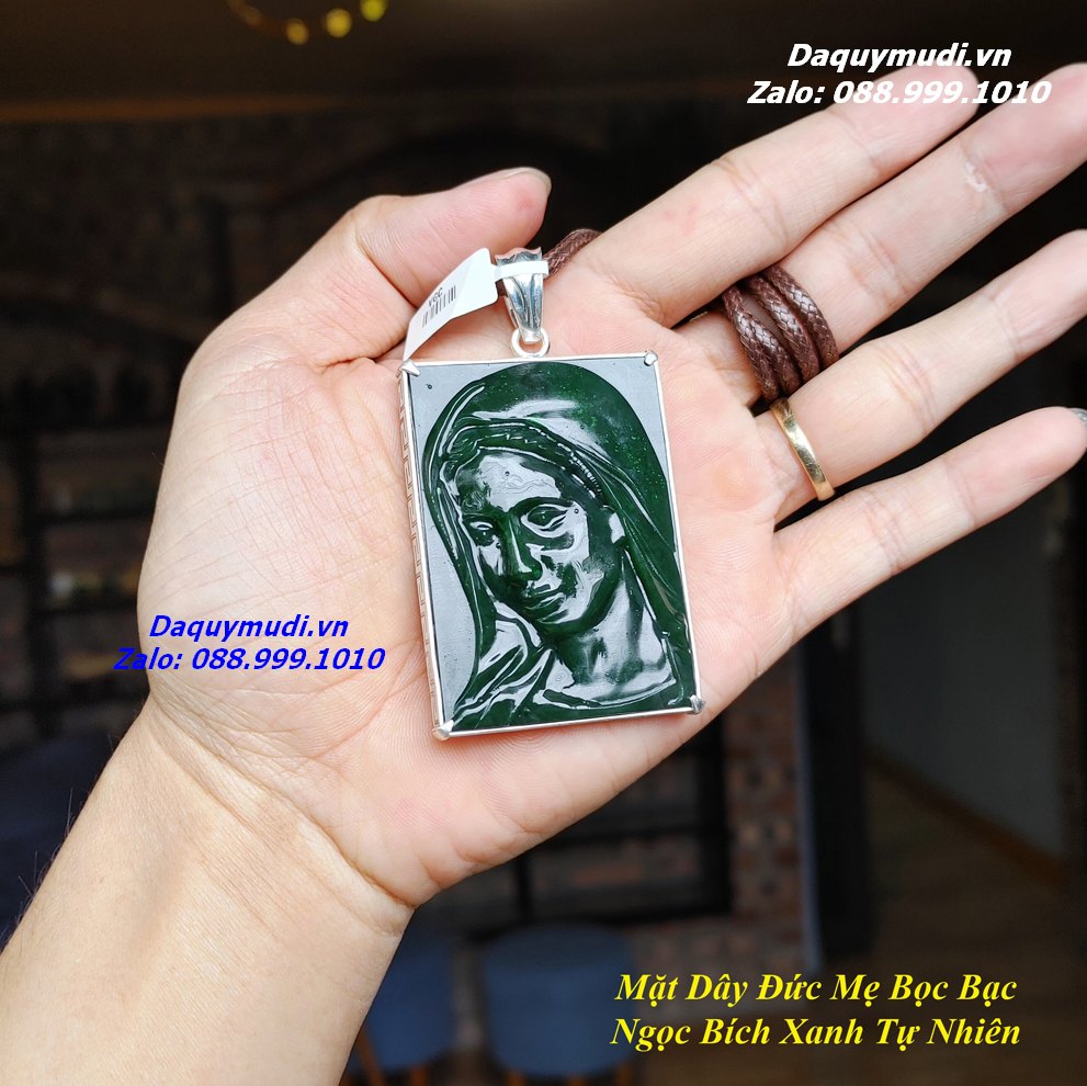 Bộ sản phẩm gồm: Mặt ngọc Đức Mẹ Maria - Ngọc Bích Xanh, dây đeo như hình ảnh, túi nhung đỏ, hộp đựng.