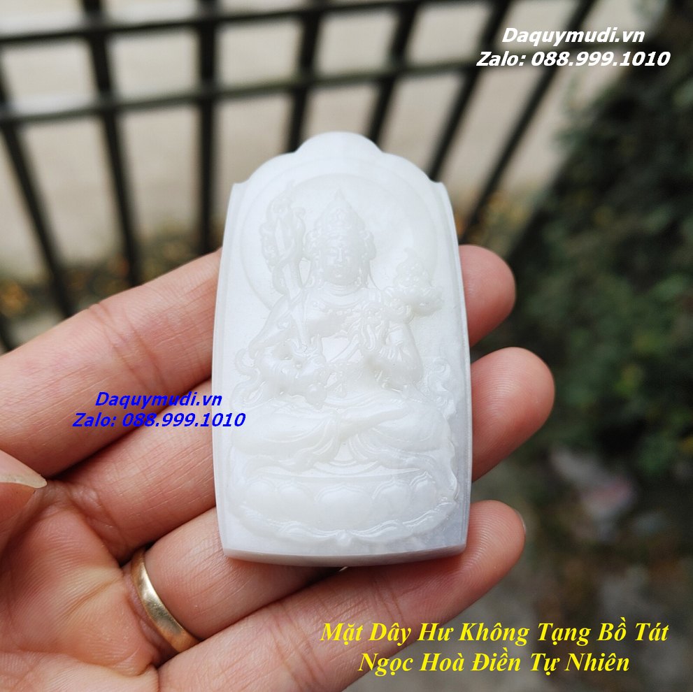 Bộ sản phẩm gồm: 1 mặt dây chuyền chạm khắc hình phật HƯ KHÔNG TẠNG BỒ TÁT từ chất liệu NGỌC HOÀ ĐIỀN tự nhiên, dây đeo, túi nhung đỏ, hộp đựng sang trọng.