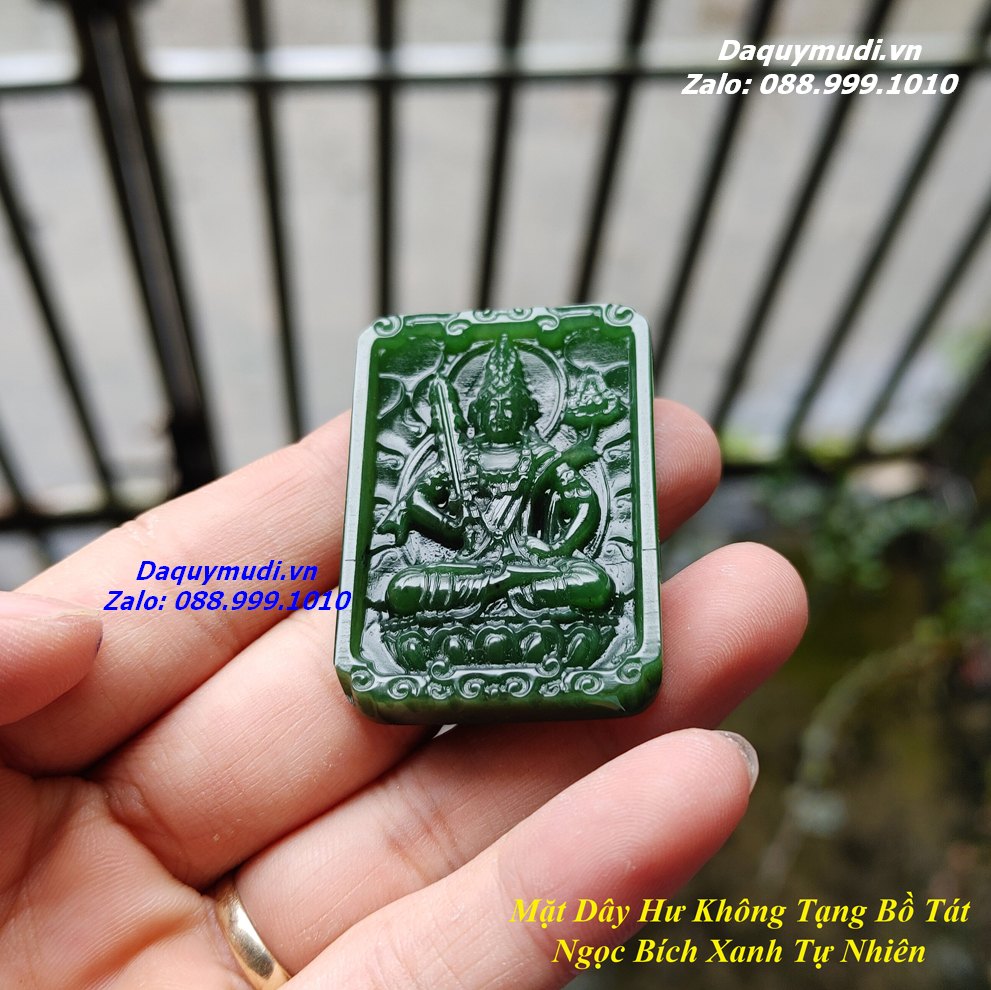 Bộ sản phẩm gồm: 1 mặt dây chuyền chạm khắc hình phật HƯ KHÔNG TẠNG BỒ TÁT bằng NGỌC BÍCH xanh tự nhiên, dây đeo, túi nhung đỏ, hộp đựng.