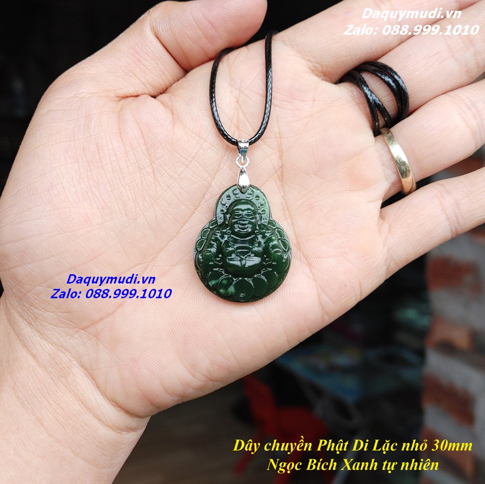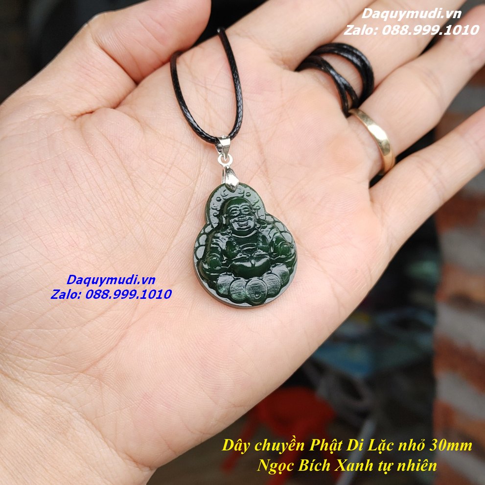 Bộ sản phẩm gồm: Mặt dây chuyền Phật Di Lặc Ngọc Bích tự nhiên, dây đeo – túi nhung đỏ, hộp đựng.