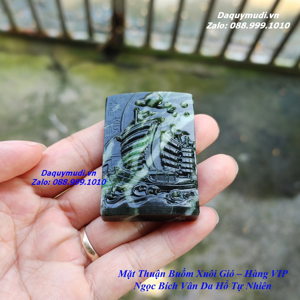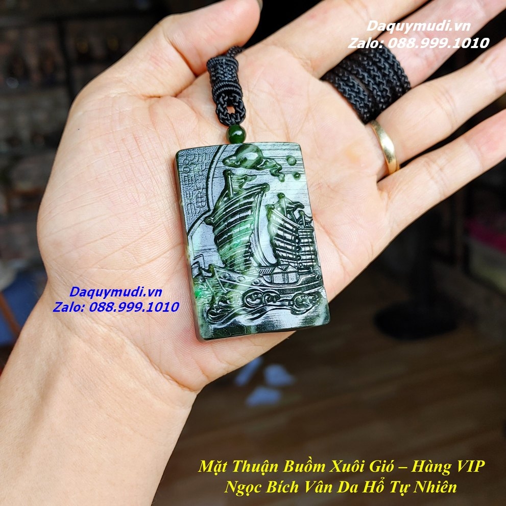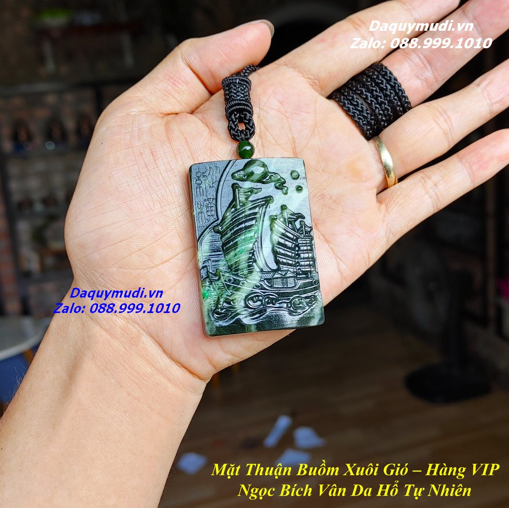 Bộ sản phẩm gồm: 1 mặt dây chuyền chạm khắc THUẬN BUỒM XUÔI GIÓ từ chất liệu NGỌC BÍCH VÂN DA HỔ tự nhiên, dây đeo, túi nhung đỏ, hộp đựng sang trọng.