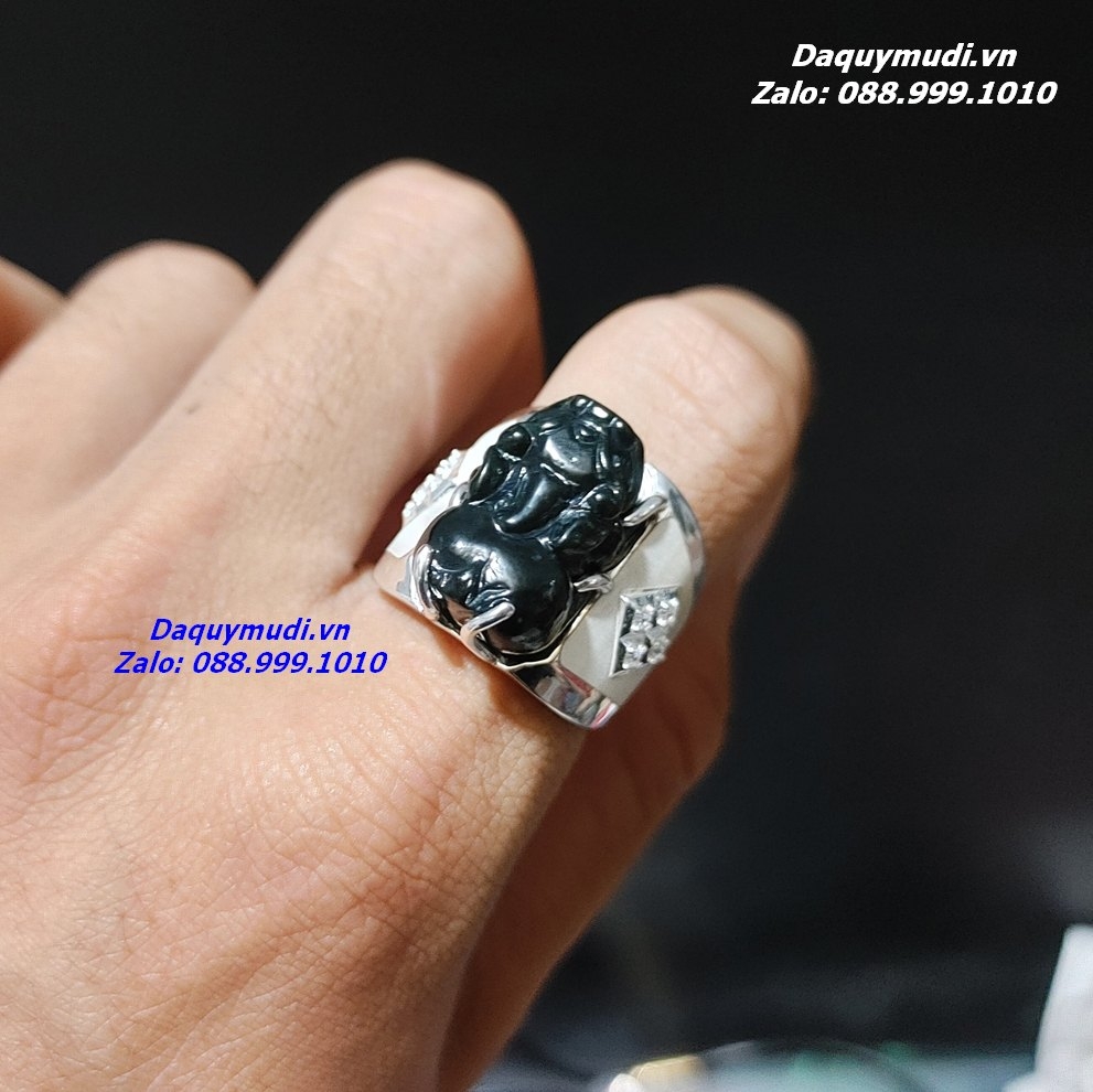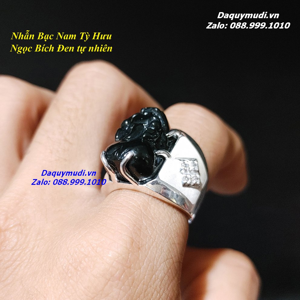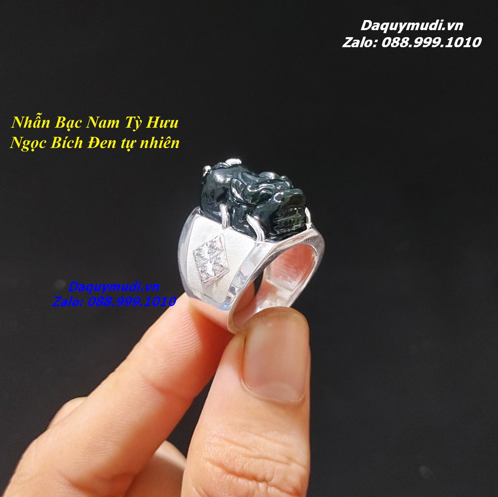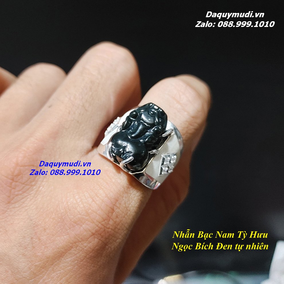 Bộ sản phẩm gồm: Nhẫn BẠC Tỳ Hưu - chất liệu Ngọc Bích Đen thiên nhiên hàng tuyển chọn, túi nhung đỏ, hộp đựng loại đẹp.