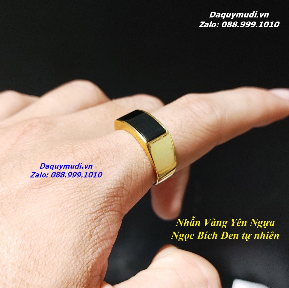 Bộ sản phẩm gồm: Nhẫn VÀNG 10K bọc mặt ngọc bích đen dáng Yên Ngựa như hình ảnh, túi nhung đỏ, hộp đựng loại đẹp.