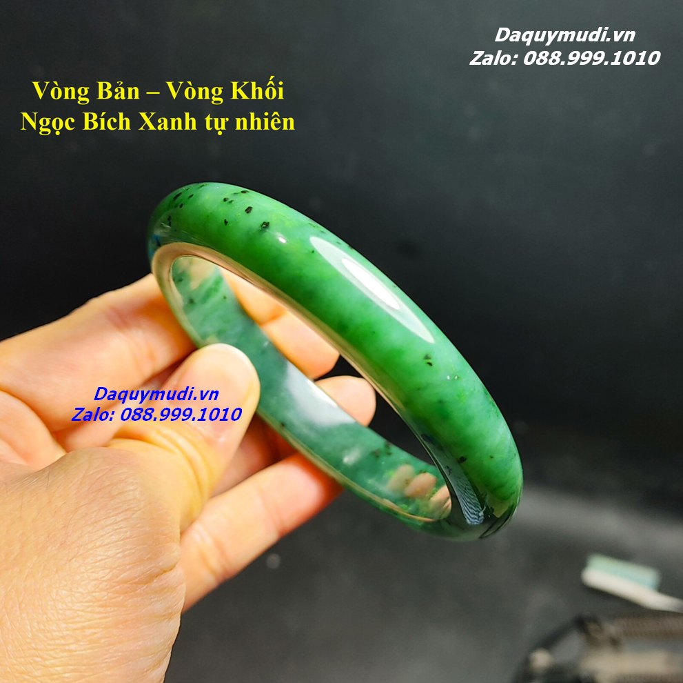 Đây là mẫu vòng bản liền (liền khối) được mài từ 1 khối ngọc nguyên vẹn nên sẽ khó làm hơn vòng dạng hạt, để có 1 miếng ngọc đủ điều kiện (kích thước, độ liền – ít rạn) sẽ hiếm và khó – vì vậy mà giá của 1 chiếc vòng tay ngọc bích dạng khối liền sẽ có giá cao hơn nhiều lần so với vòng dạng hạt. (Vòng dạng hạt có thể mài từ những miếng ngọc nhỏ, vụn…còn vòng bản liền thì bắt buộc phải mài từ 1 miếng ngọc to và đẹp).