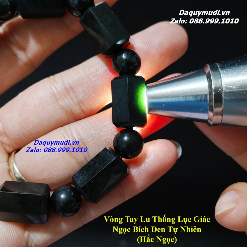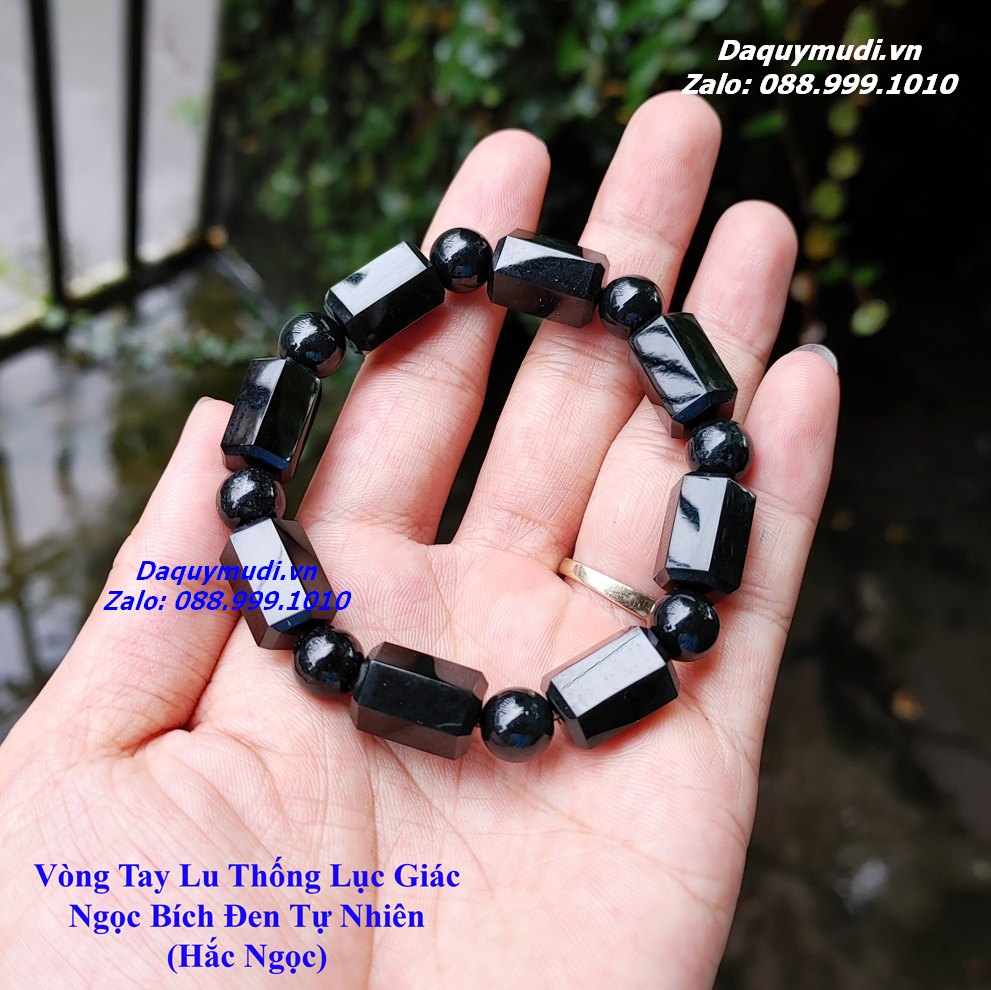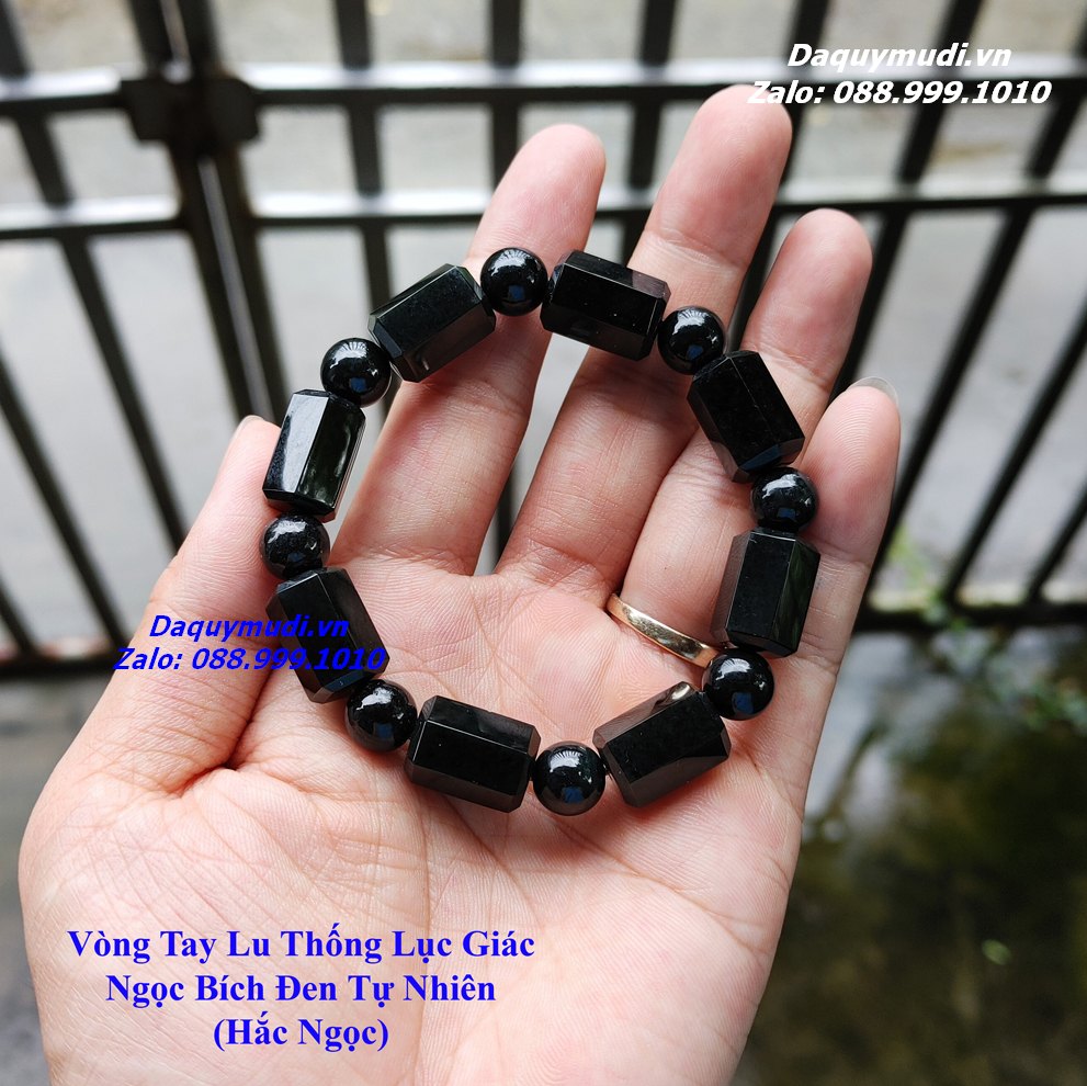 Bộ sản phẩm gồm: Vòng đeo tay lu thống Lục Giác mài từ chất liệu Ngọc Bích Đen thiên nhiên (Hắc Ngọc), túi nhung đỏ, dây dự phòng, hộp đựng vòng tay loại đẹp.
