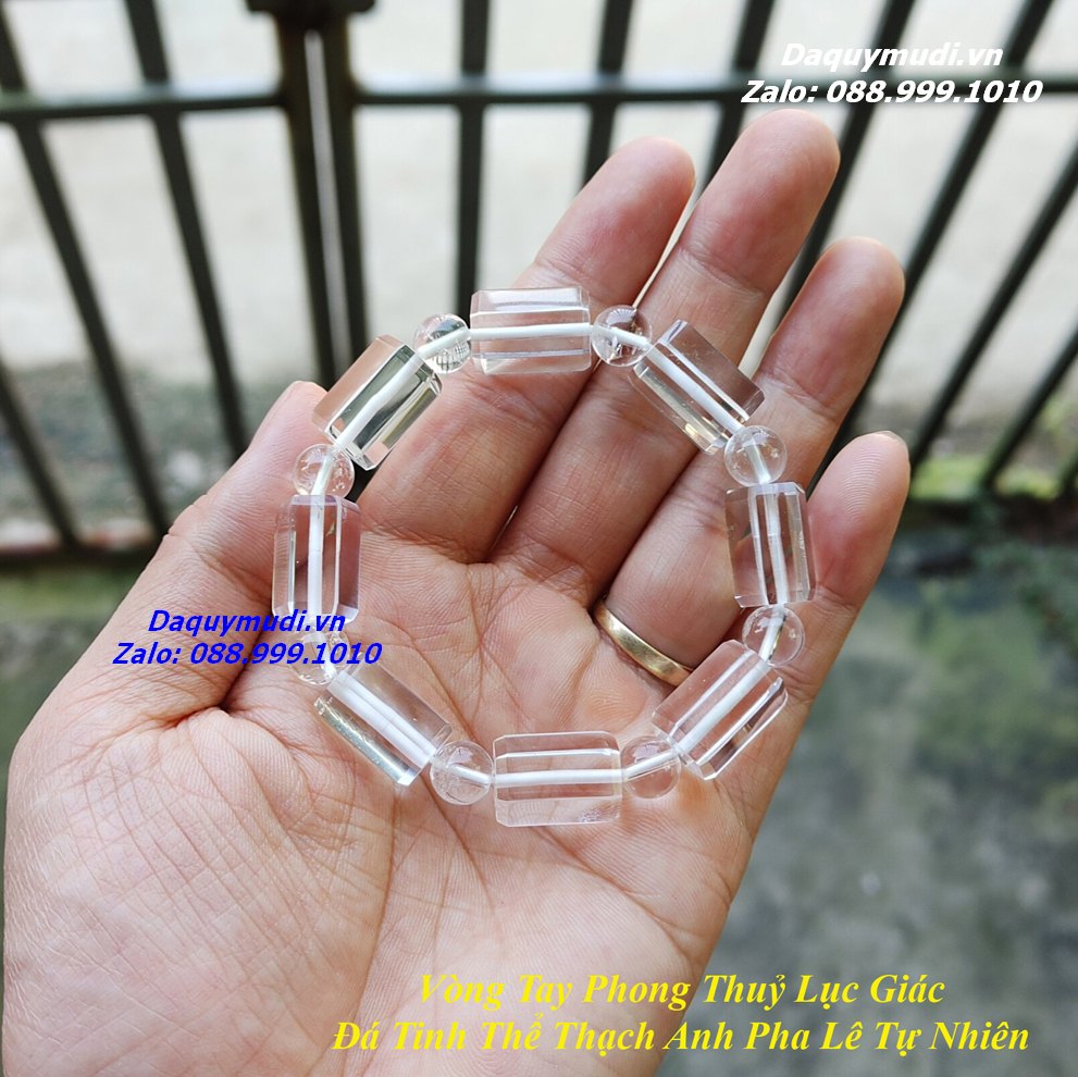 Bộ sản phẩm gồm: Vòng tay được mài thủ công từ đá thạch anh trắng pha lê hàng tuyển chọn, dây dự phòng, túi nhung đỏ, hộp đựng sang trọng.